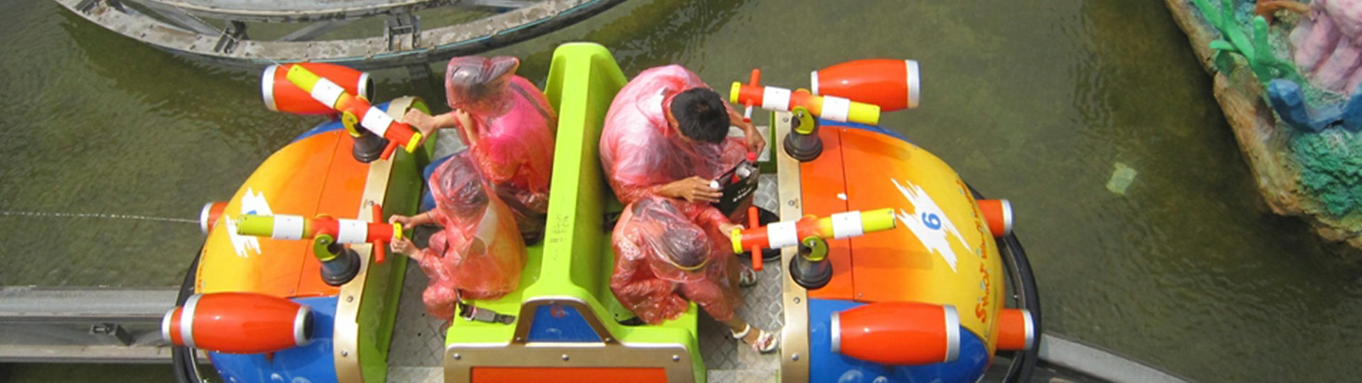 射?戰(zhàn)船是?套互動(dòng)性較強(qiáng)的?上游樂設(shè)備。乘客在乘坐戰(zhàn)船過程中可使?射?槍向其它戰(zhàn)船上的乘客進(jìn)?射?,互相嬉戲??啥ㄖ苽€(gè)性化主題造景,增強(qiáng)互動(dòng)效果。