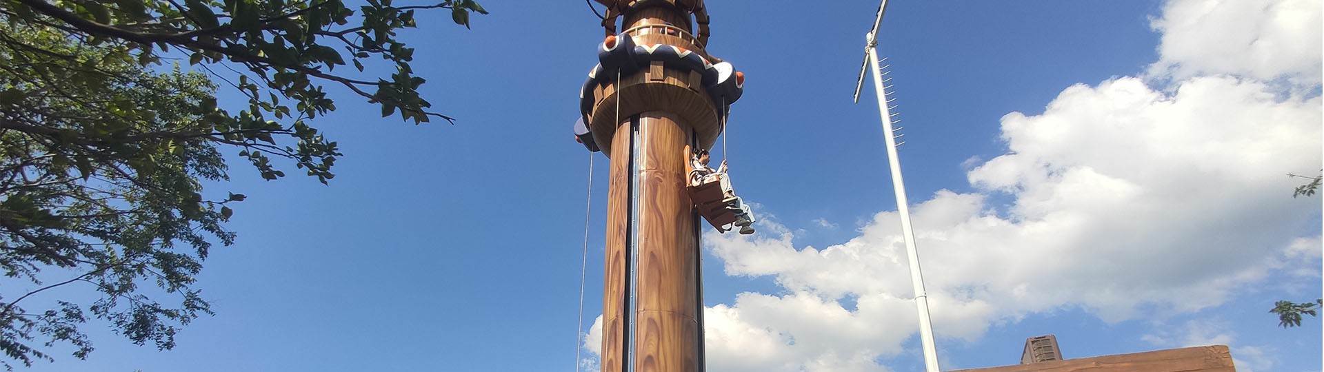 在乘客拉繩操作下快速升、降或停留在半空;快速上升時,因要雙手交替拉繩,使人產(chǎn)生一種攀爬向上的感覺;快速下降時又有高處下落的刺激;老、少咸宜。