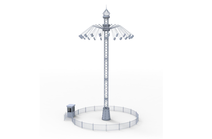 ??塔設(shè)備由塔體、滑?架、吊椅三部分組成。獨(dú)有雙?座椅設(shè)計(jì),隨著速率越來(lái)越快,座椅在半空中向外飄散,在整個(gè)游玩過程中乘客可充分享受?速??的暢快,刺激?浪漫。