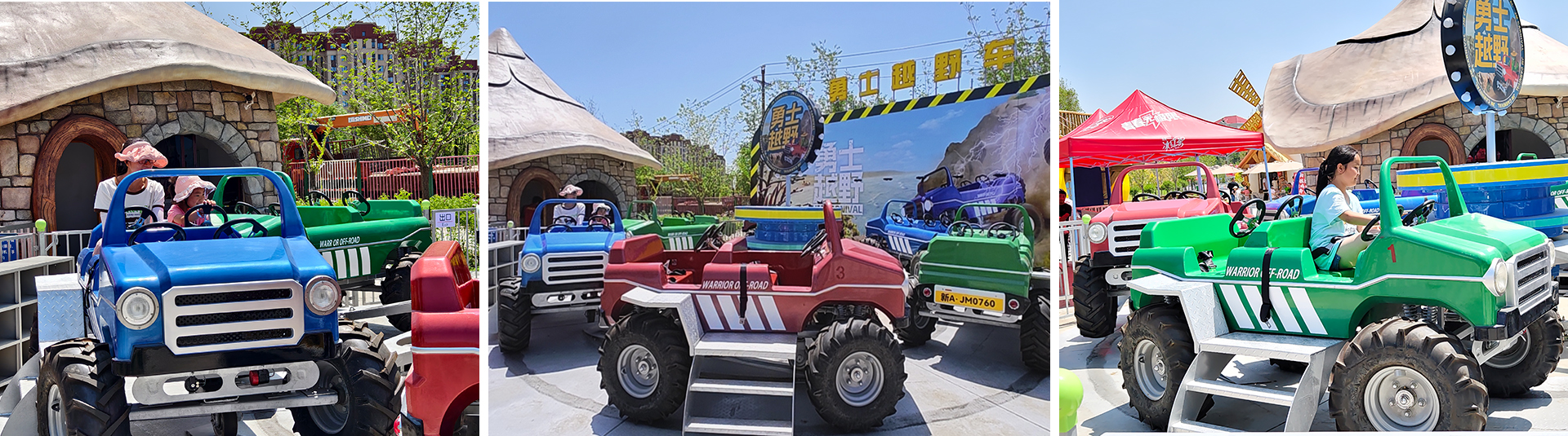 勇?越野?,以越野?為主題,?體繞中?旋轉(zhuǎn),同時在路軌上設(shè)有兩個障礙坡。通過坡道產(chǎn)?短暫的懸空狀態(tài),讓游客體驗?躍的感覺。整體包裝設(shè)計采?越野?狂野的造型,巨?的輪胎加以?屬質(zhì)感的?殼,仿佛西部?仔馳騁于?壁,體驗狂野的感覺,深受?童/親?游客的喜愛。